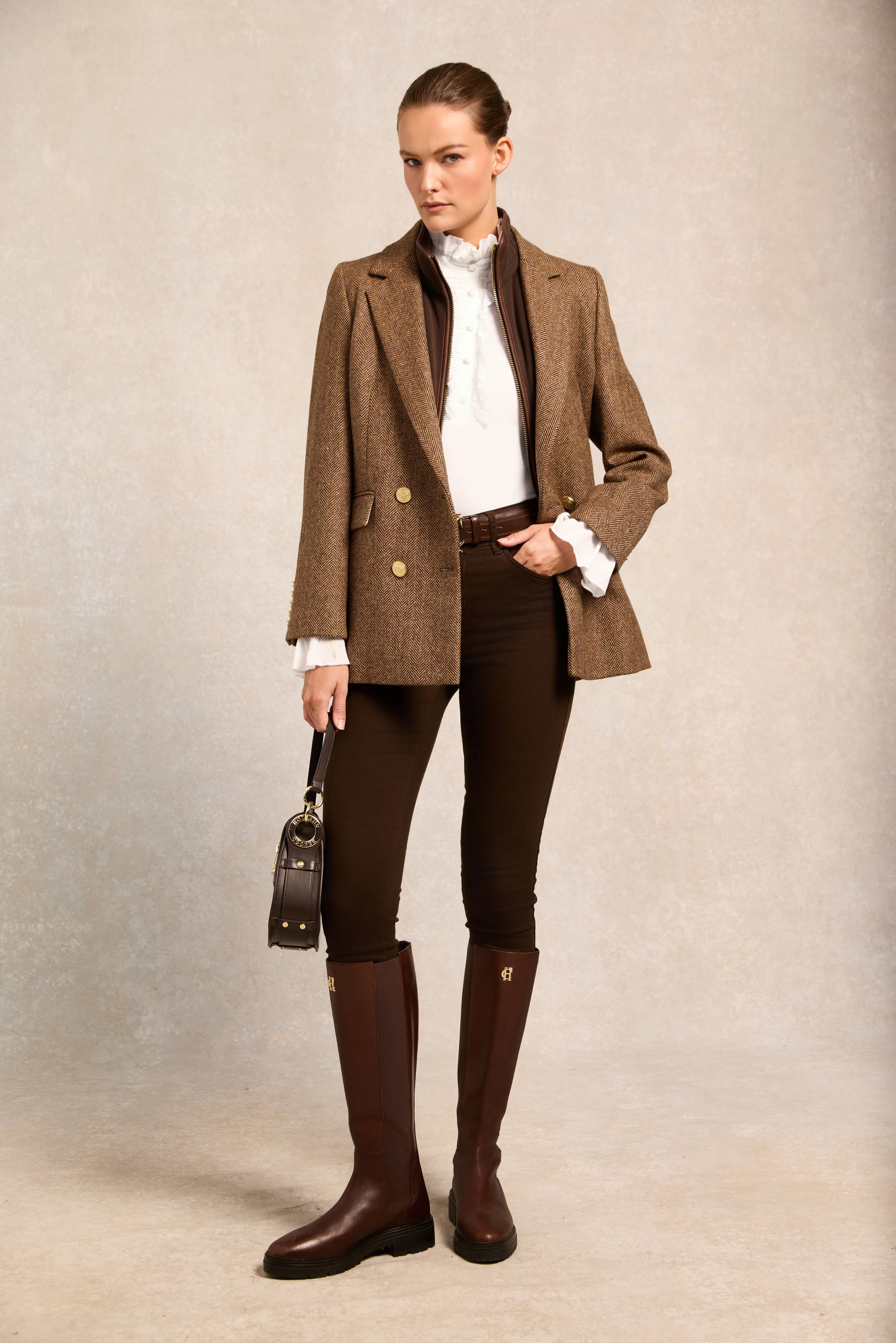 Designed as a neatly fitted shirt with feminine frills on the front and cuffs giving a softness to the blouse. This blouse is highly versatile, style with our high-waisted peg trousers or layer under one of our jumpers with the collar and cuff peeking out.